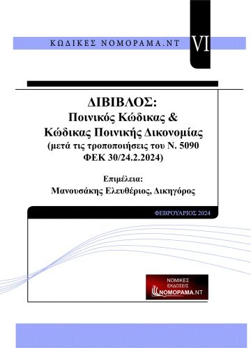 ΔΙΒΙΒΛΟΣ: Ποινικός Κώδικας & Κώδικας Ποινικής Δικονομίας (μετά τις τροποποιήσεις του Ν. 5090 ΦΕΚ 30/24.2.2024)
